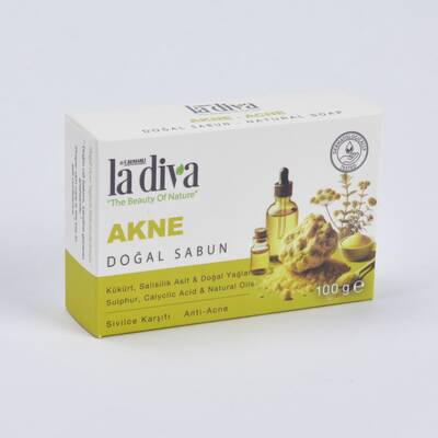 La Diva Sivilce Karşıtı Cilt Bakım Sabunu; cildiniz için hazırlamış olduğu özel formülüyle içermiş olduğu kükürt, salisilik asit, ardıç yağı, papatya yağı ve adaçayı yağı ile ciltteki sivilcelerin oluşumunu önlemeye yardımcı olur, renk tonunuzun eşitlenmesine destek olur. Ayrıca hyalüronik asit ve E vitamini ile cildinize sağlıklı bir görünüm kazanmasına yardımcı olur.Kullanma Talimatı: Su ile köpürtüp nazikçe masaj yaparak yüzünüzü ve vücudunuzu yıkayabilirsiniz. Kullandıktan sonra bol su ile durulayınız.